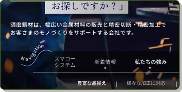 発注/受注に便利な独自サービス「スマコーシステム」への誘導を中心としてサイトを構成しました。