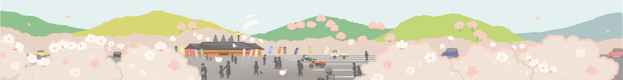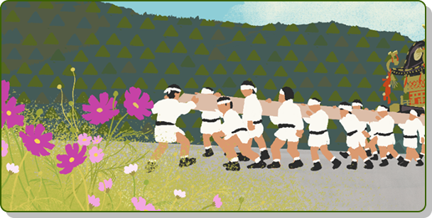 「京北花ふるさと音頭」では、京北地域の実際の風景を元にイラストを制作しました。