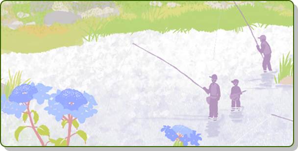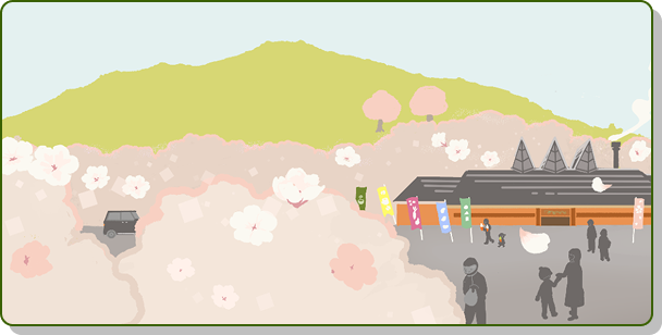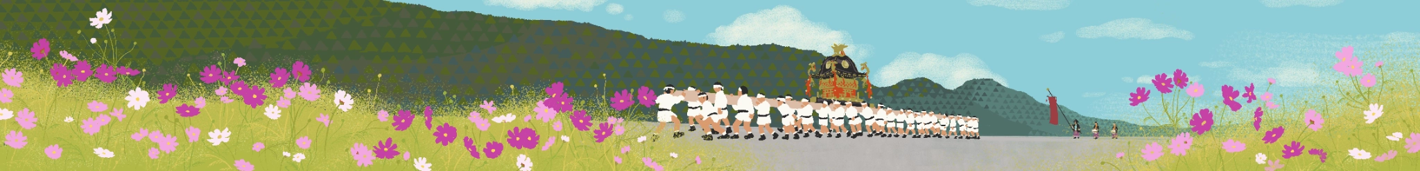 「京北花ふるさと音頭」では、京北地域の実際の風景を元にイラストを制作しました。